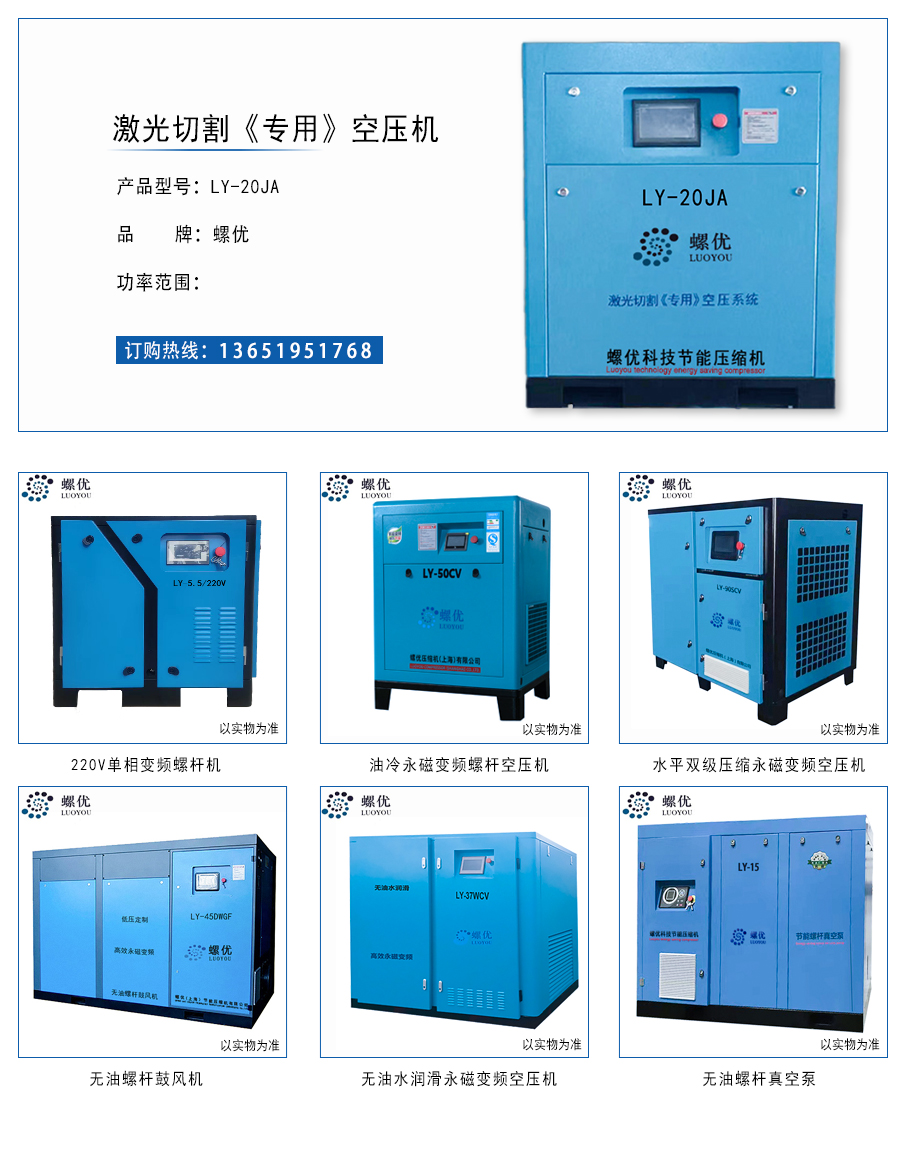 产品中心 首页 > 供应产品 > 激光切割专用空压机 > 工频单台 > LY-20JA